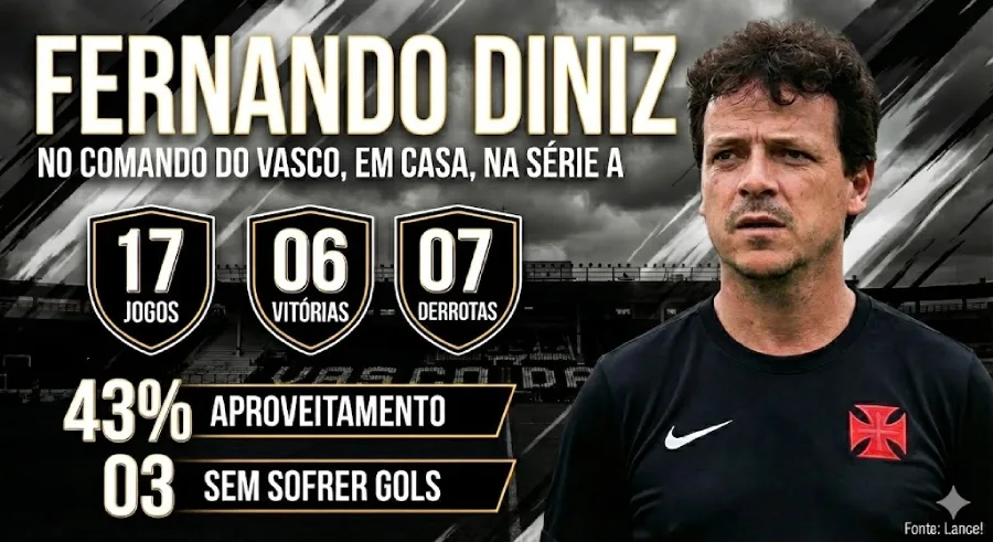 “São Januário sempre foi um caldeirão“. A frase, repetida como um mantra pelos vascaínos, está sendo desmentida pela realidade dos números sob o comando de Fernando Diniz. O fator casa, historicamente o fiel da balança para as campanhas do Vasco, desapareceu. Um levantamento estatístico do Lance! sobre os jogos da Série A mostra um cenário de terra arrasada: o treinador acumula mais derrotas do que vitórias atuando diante da torcida.
