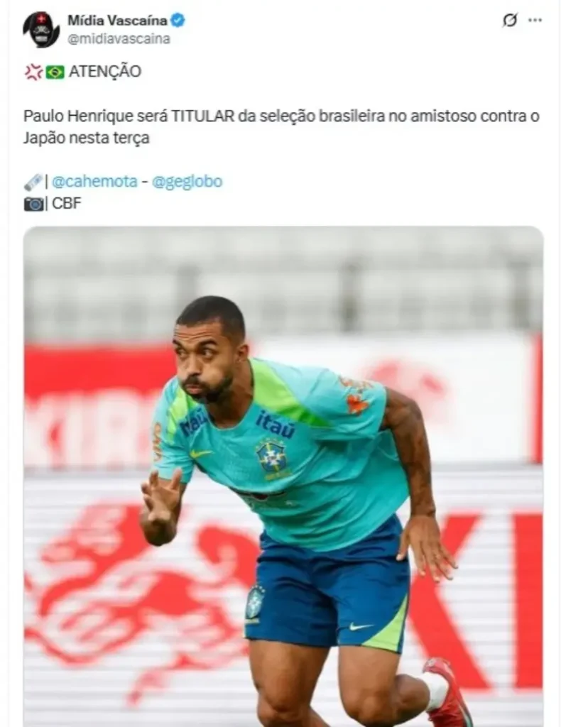 O amistoso contra o Japão acontece nesta terça-feira, às 7h30h (horário de Brasília). A torcida do Vasco aguarda com grande expectativa para assistir um de seus maiores destaques em 2025 iniciar uma partida com a amarelinha.