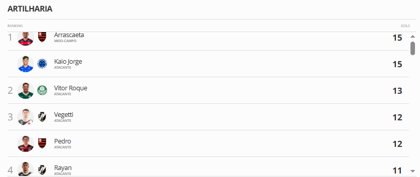 Com 11 gols no Brasileirão, a joia do Vasco agora persegue os artilheiros da competição. Ele tem 11 gols enquanto seu companheiro Vegetti tem 12. Kaio Jorge, do Cruzeiro. e Arrascaeta, do Flamengo, estão na liderança com 15 gols.