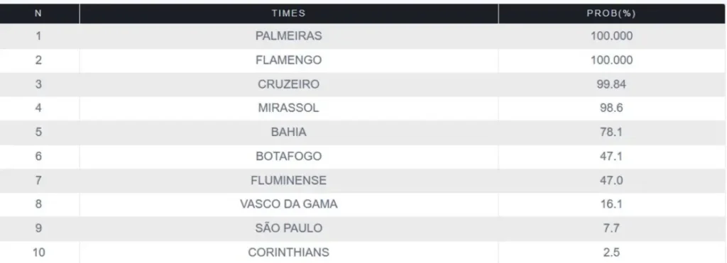 Cruz-maltino pode aumentar ainda mais suas chances de Libertadores em caso de vitória sobre o São Paulo – Fonte: Departamento de Matemática/UFMG