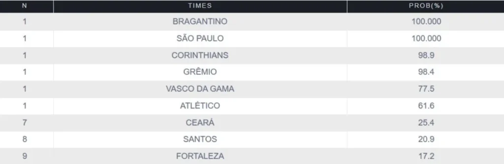 Cruz-maltino depende apenas de si para buscar a vaga no torneio continental – Fonte: Departamento de Matemática/UFMG
