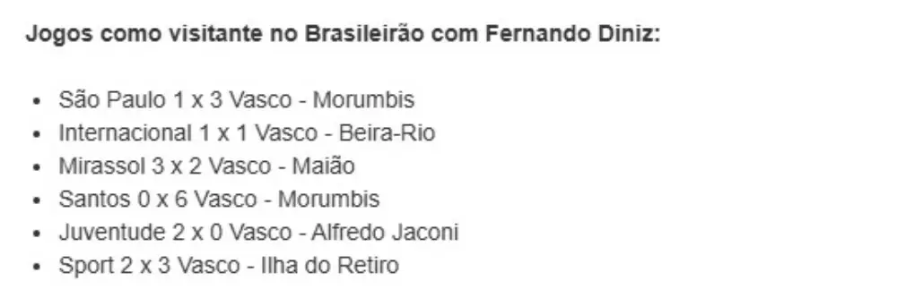 Recorte de jogos do Vasco fora de casa sob o comando de Diniz – Fonte: Arte/Portal GE