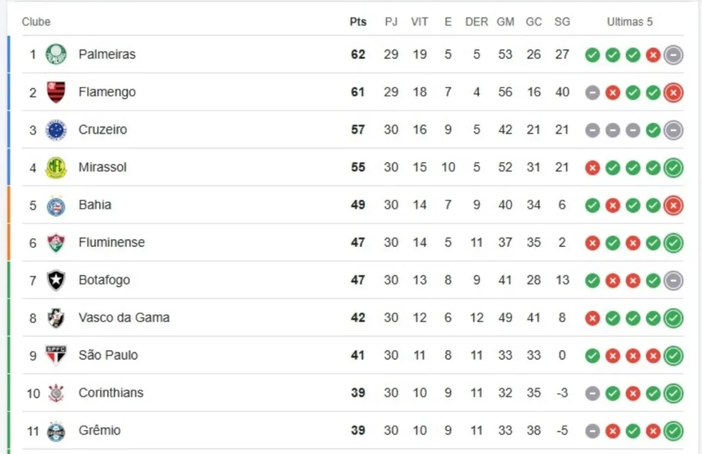 Em caso de vitória, o Gigante da Colina se aproxima ainda mais do G7 – Fonte: Tabela Séria A/Google