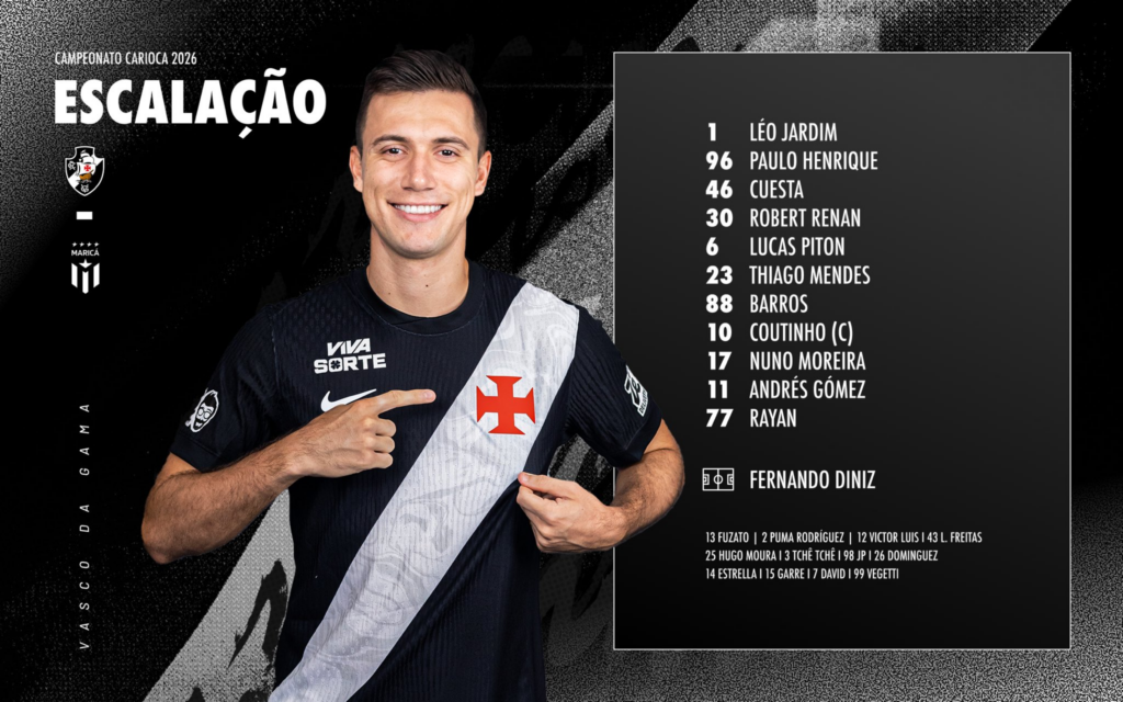 O Vasco da Gama entra em campo daqui a pouco, às 21:30h (horário de Brasília), em São Januário, para o confronto diante do Maricá, em jogo válido pelo Campeonato Carioca. A partida marca a estréia do time no Cariocão 2026 e também da Nike como nova fornecedora de material esportivo.