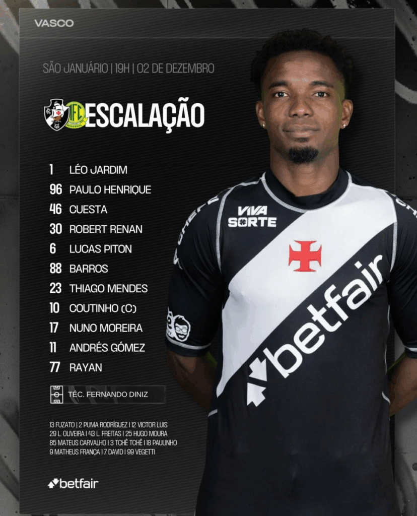 O Vasco da Gama entra em campo daqui a pouco, às 19:00h (horário de Brasília), em São Januário, para o confronto diante do Mirassol, em jogo válido pela 37ª rodada do Campeonato Brasileiro. O Gigante da Colina busca os três pontos para se aproximar do G8.