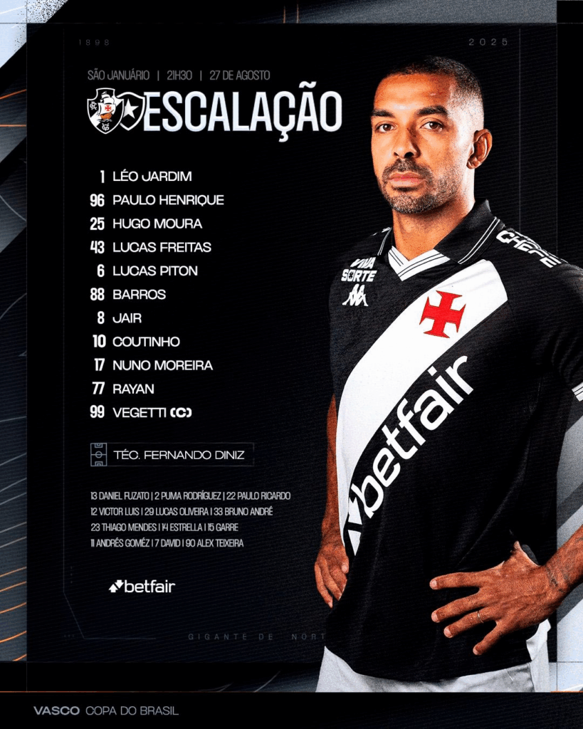 O Vasco da Gama entra em campo daqui a pouco, às 21:30h (horário de Brasília), no estádio São Januário, para o duelo diante do Botafogo, em jogo que abre o confronto pelas quartas de final da Copa do Brasil. A partida de volta acontecerá somente no dia 11 de Setembro.