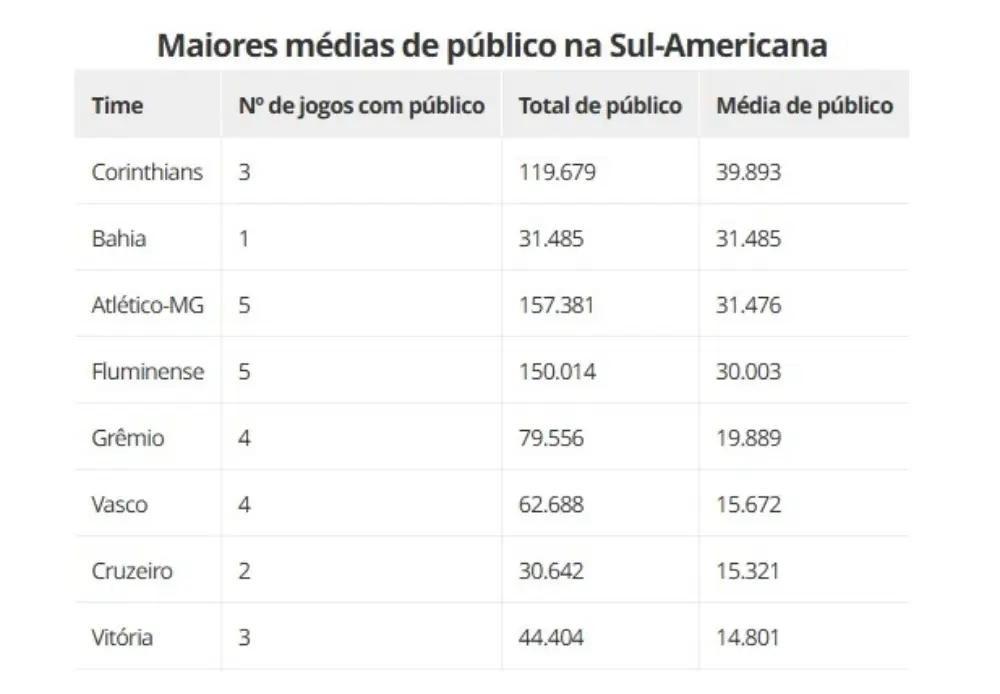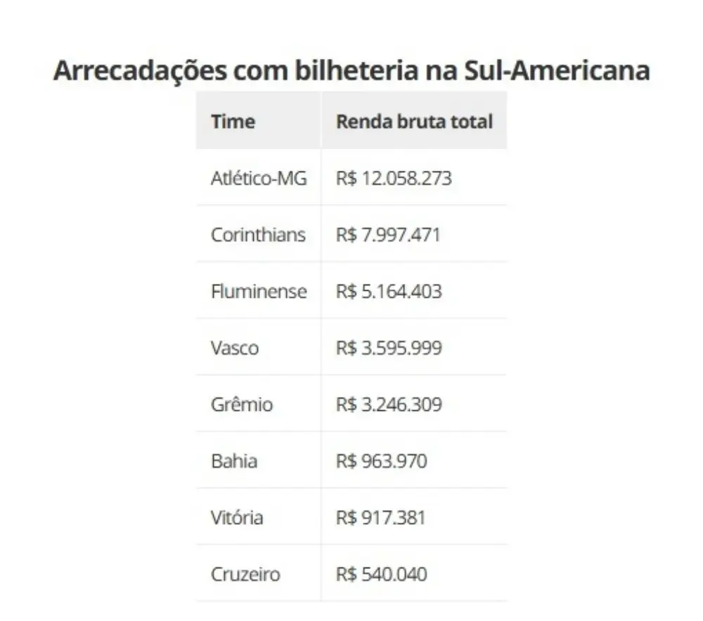 A participação do Vasco na Copa Sul-Americana de 2025, embora tenha parado nos playoffs, rendeu bons frutos financeiros ao clube. Um levantamento completo sobre as bilheterias dos times brasileiros no torneio mostrou que o Cruz-Maltino teve a quarta maior arrecadação bruta entre os oito representantes do país.